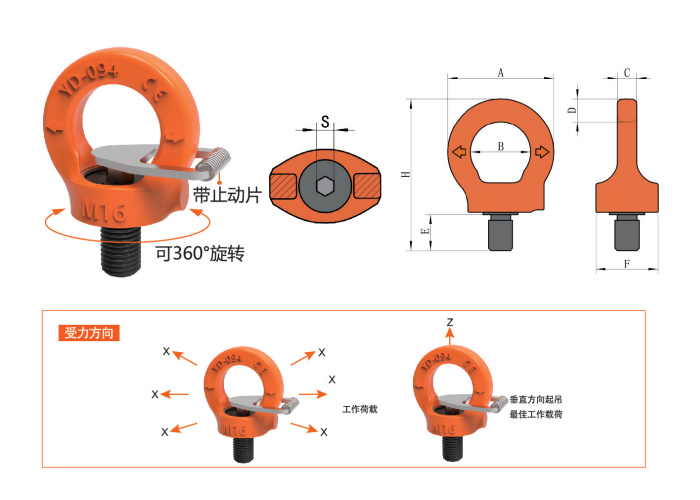 冠航YD094-M42公制螺紋M42x4.5-6g眼型旋轉吊環以其靈活、安全、耐用的性能,在起重領域得到了廣泛的應用。